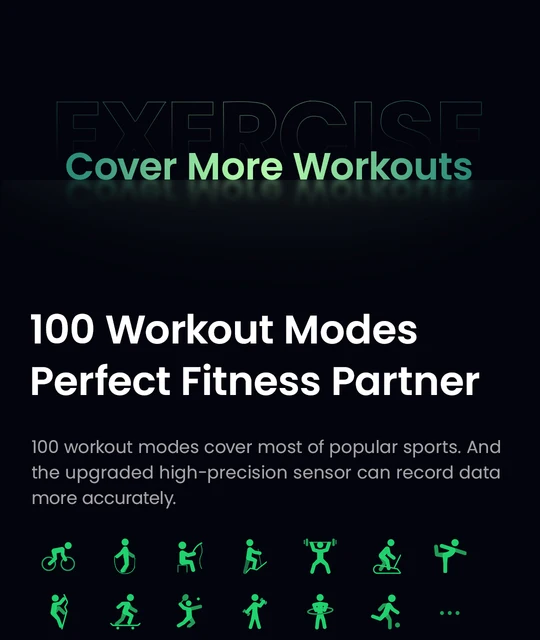 【100 modos de treino, parceiro de fitness perfeito】100 modos de treino cobrem a maioria dos esportes populares.E o sensor de alta precisão atualizado pode gravar dados com mais precisão.