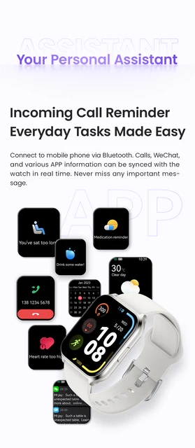 【Lembrete de chamada recebida, tarefas diárias facilitadas】Conecte-se ao telefone celular via Bluetooth.Chamadas, WeChat e várias informações do APP podem ser sincronizadas com o relógio em tempo real.Nunca perca nenhuma mensagem importante.